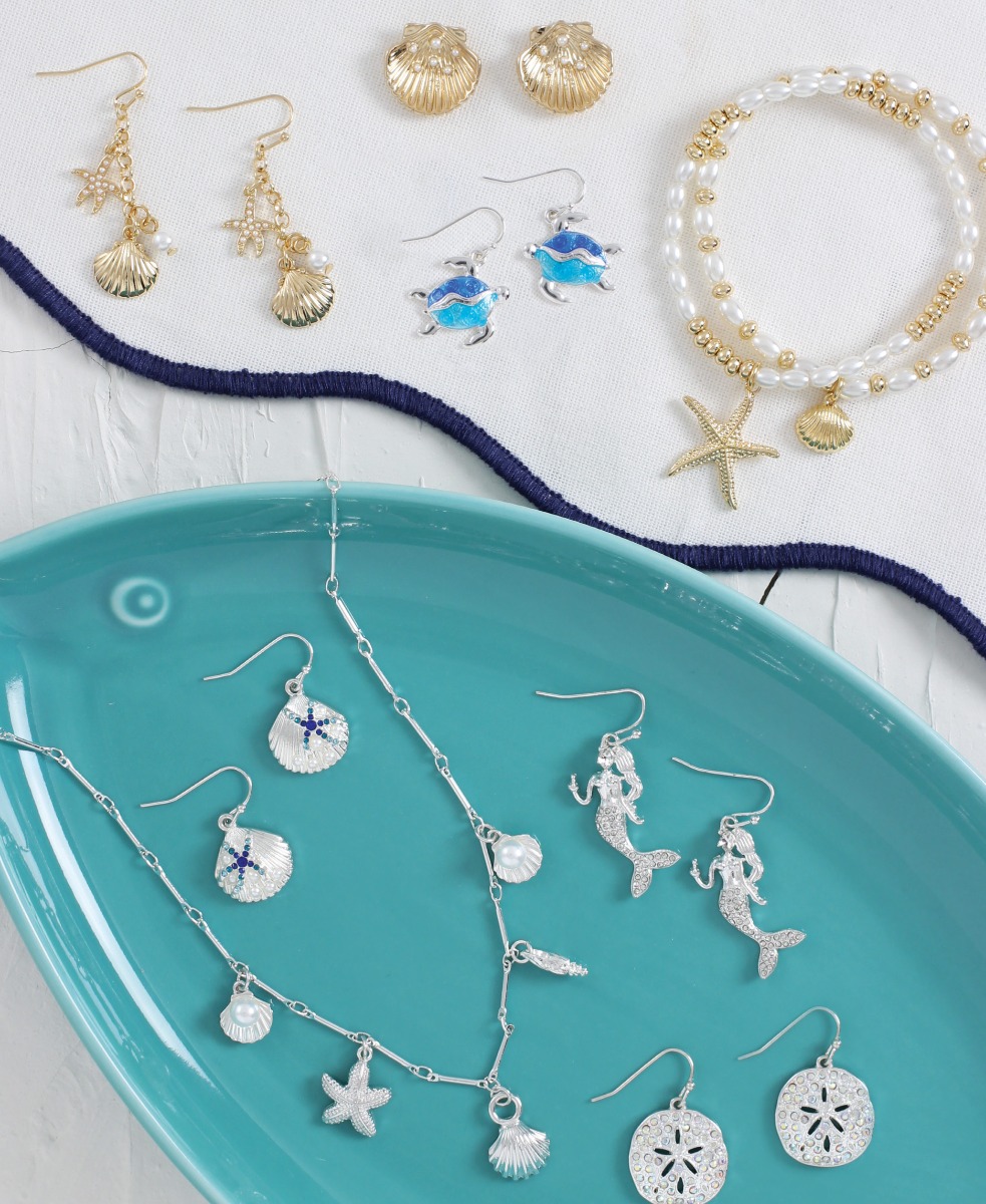 Looking to make a splash with your coastal style this season? Try some feathery flamingo earrings! Or a pair of sporty turtle studs! Make a statement with pink crystal-studded seahorse drops, or add a bit of subtle sparkle with an aqua seed-bead anklet. Whatever you wish, we have the sea life icons to make your beach-style dreams come true!